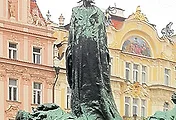 대부분의 관광객은 매시 정각 인형이 움직이는 시청사의 천문시계를 보려고 이곳을 찾지만 이곳 광장에는 개신교도에게 특별한 의미를 갖는 동상이 있다.