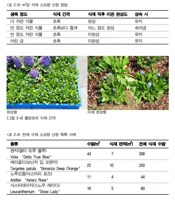 물망초의 식재 간격. 식재 소요량 산정 방법