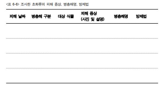 3. 조사한 초화류의 피해 증상, 병충해명, 방제법을 정리한다. 병충해 피해가 있는 초화류를 조사하여 피해 날짜별로 피해 증상과 병충해명, 방제법을 정리한다.