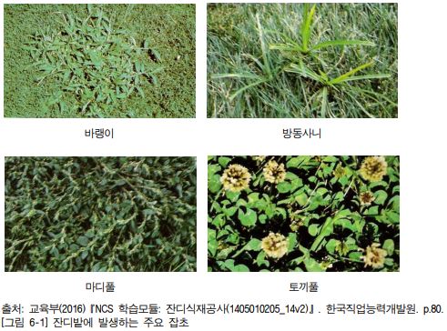 잡초란 원하지 않는 식물을 의미하며 잔디생장 시 영양분 및 수분의 경합, 병해충의 매개 및 유해한 물질 분비 등 부정적인 영향을 줄 수 있다. 또한, 잔디밭은 식생이 균일한 초종으로 조성되기 때문에 시각적 관점에서 잡초는 미적 가치를 떨어뜨릴 수 있고, 스포츠 잔디밭에서 는 경기기능 훼손 등의 문제가 나타날 수 있다.