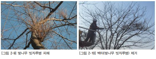 (2) 이병목이 크게 손상되었을 경우, 벌채하여 제거하거나 소각한다.