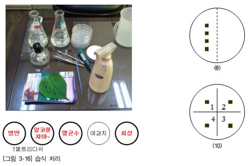 1. 병든 조직(병환부)을 습실 처리하면 병원균의 균사나 포자가 나온다.