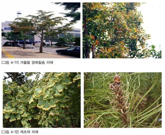 2. 수목에 발생한 생리적 피해상을 조사한다.