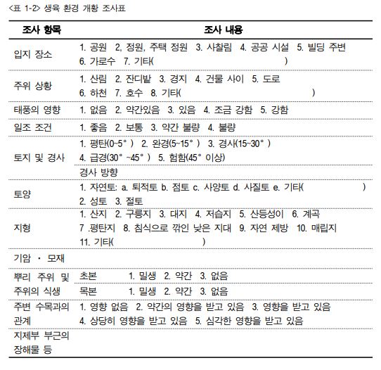 2. 수목의 생육환경을 조사한다.