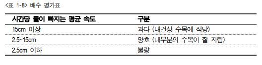 (2) 다음과 같이 일정한 구덩이를 파서 토양의 수분 흡수율을 육안으로 조사하면 대략적인 배수 양호도를 측정할 수 있다.