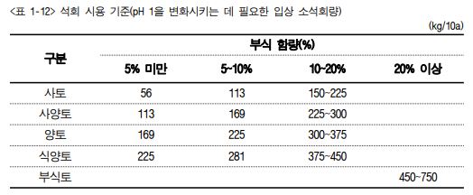 1. 아황산가스, 산성비로 인해 산성화된 토양의 이화학 분석을 통해 정확한 필요 석회 요구량을 산출한다.