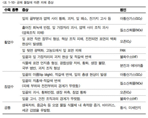 1. 대기 오염 물질에 의한 피해