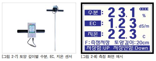 (2) 현장 간이 측정 측정하고자 하는 토양에 원하는 깊이만큼 센서를 꽂는다. 측정 버튼을 누르고 약 5초 후에 측정값을 확인한다.