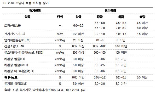 토양 산도(pH), 토양 양료, 양이온 치환용량(CEC)과 전기 전도도(EC) 등 3. 생물적 인자 토중 동물, 미생물, 균근 등