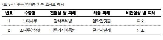 (1) 전염성 병, 해충 피해, 비전염성 병의 발생 현황을 조사한다.