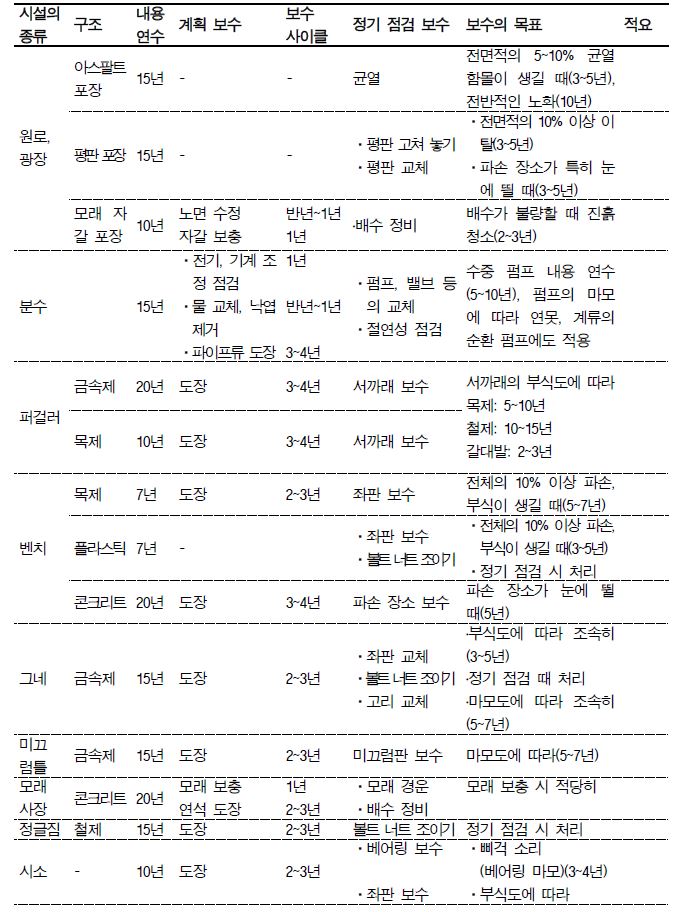 5. 조경시설물 유지관리의 시간적 계획(한국조경학회. 신 조경관리학. 2016)