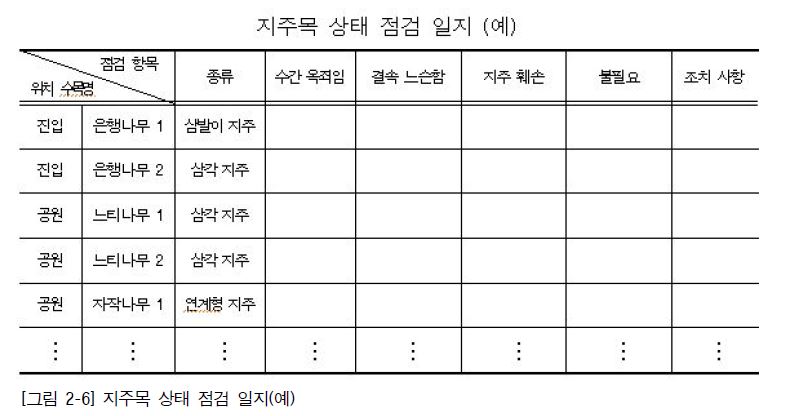 2. 대상지의 지주 점검표를 작성하여 정기적으로 점검한다.