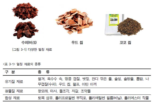 (1) 멀칭의 재료는 입자가 너무 작으면 사용하기에 불편하다.