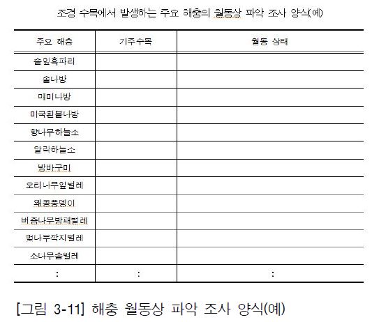 3. 조경 수목에서 발생하는 주요 해충의 월동상을 파악하여 관리 대상 수목을 선정한다.