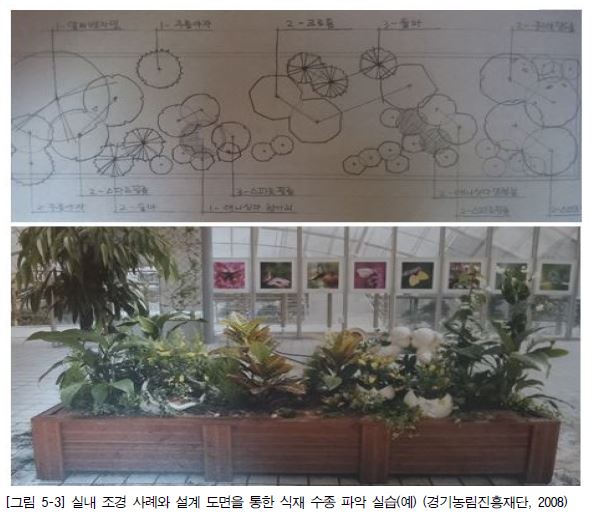 1. 실내 조경 설계 도면과 설계 사례를 보며 식재된 실내 식물을 파악한다.