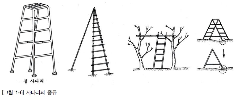 1. 사다리 등 작업용 지지 도구의 크기, 재질, 종류를 작업 유형 및 규모에 맞게 선정하고 준비한다.