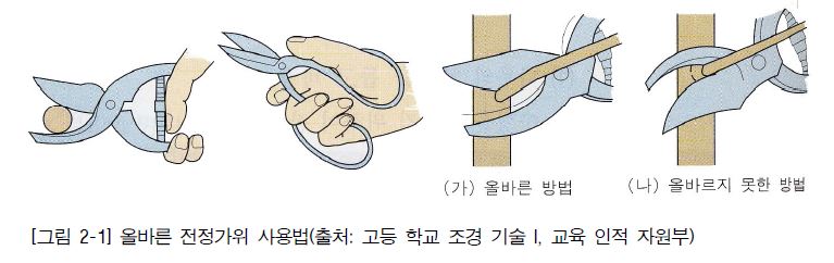 1. 전정가위는 아래 그림과 같이 쥐고 전정을 시작한다.