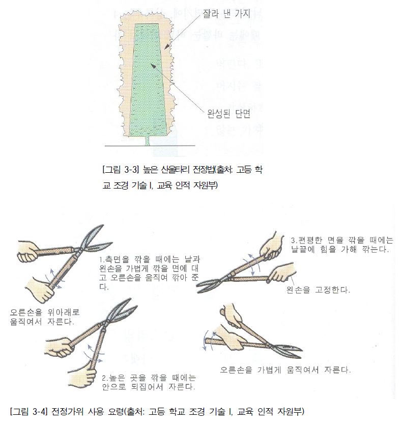 (2) 동력 전정기나 전정가위를 이용하여 윗면을 먼저 전정한다.