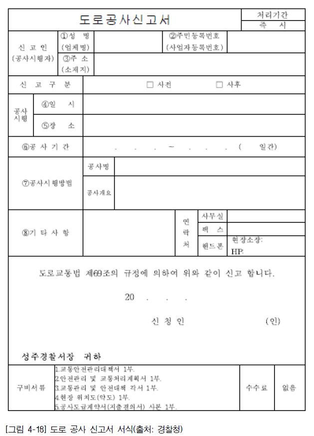 2. 「도로교통법」 제64조에 의한 신고 서식 및 구비 서류를 작성한다.