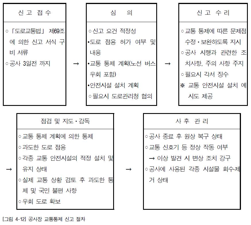 아래 절차에 따라 신고를 한 후 심의를 받은 후 결과를 반영하여 교통 통제 등의 교통 관리와 안전 관리를 실시한다.