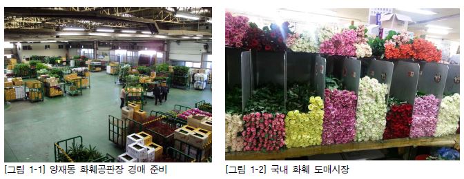 라서 화훼 도매시장은 크게 공영도매시장이라고 할 수 있는 법정도매시장, 전문농협에서 운영하는 공판장 및 재래시장 등 3가지로 구분할 수 있다.