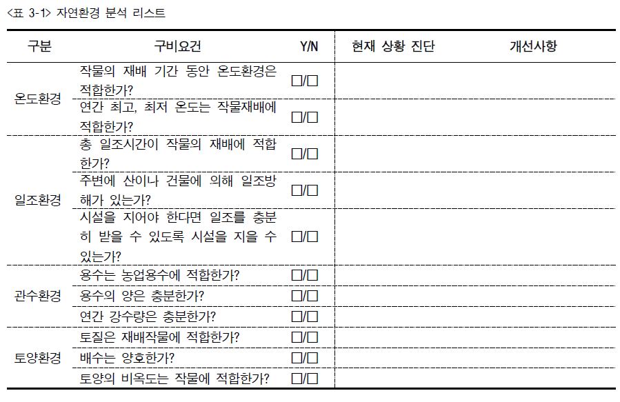 1. 재배예정지의 자연환경을 분석하기 위하여 관련기관에서 조사된 결과를 수집한다.