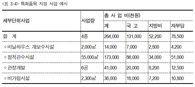 2. 특화품목에 대한 지원 정책에 대해 확인한다.
