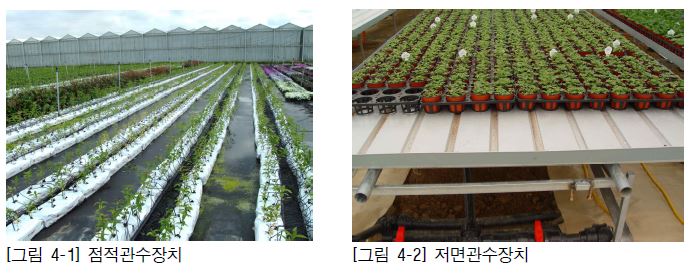 시설 내에서는 주기적이고 계획적인 수분 공급이 가능하다. 이를 위해서는 합리적인 관수설비를 갖추는 것이 필요하다. 관수장치는 점적관수장치, 살수관수장치, 저면관수 장치 등이 있다.