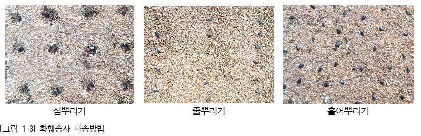 작은 종자는 모래와 종자의 비율이 5:1 정도 되도록 혼합하여 흩어뿌리기를 할 수도 있다.