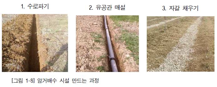 3. 배수가 잘 안 되는 평지는 암거배수(속도랑 물 빼기) 시설을 설치한다.