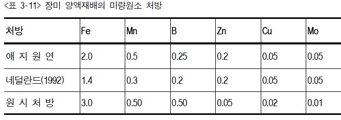 (1) 양액의 농도는 다량원소는 me/L로, 미량원소는 ppm을 사용한다.