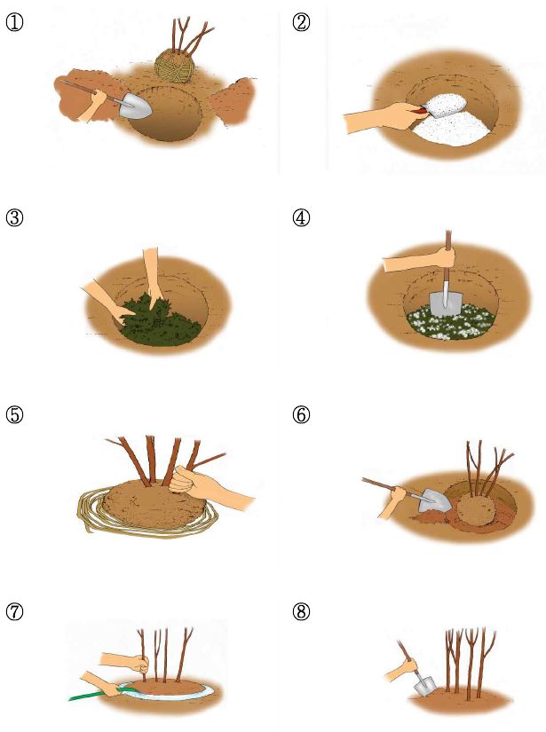 2. 묘의 크기와 식재거리에 맞게 심을 구덩이를 마련해 둔다.