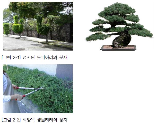 1. 생울타리로 이용되고 있는 쥐똥나무 또는 회양목의 불필요하게 웃자란 가지를 자른다.
