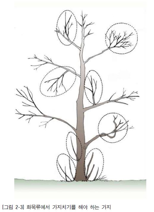 화목류에서 가지치기를 해야 하는 가지