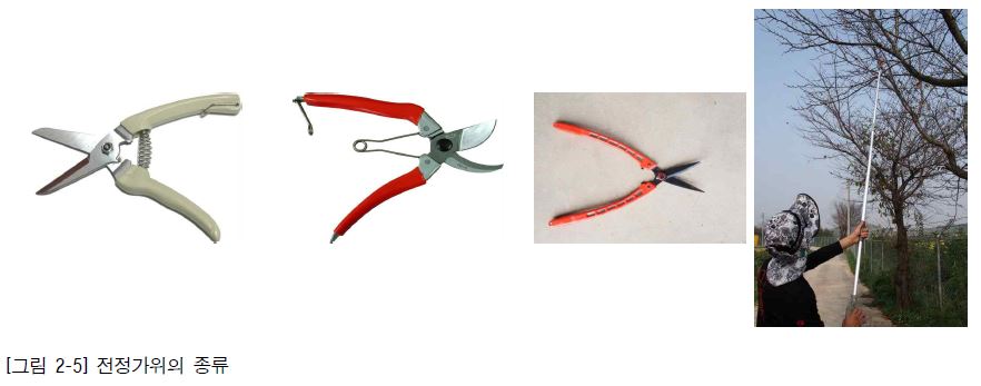 사람 키가 닿지 않는 높은 곳의 가지는 고지 가위를 이용한다.