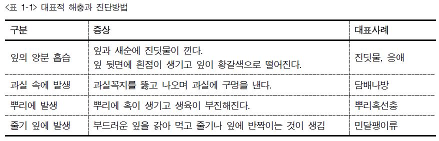 병해충 방제법은 ①생물학적 방제 ②물리적 방제 ③재배적 방제 ④화학적 방제로 나눌 수 있다.