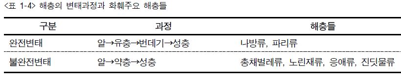 (4) 몸의 구조적인 적응력이 좋으며, 변태(알→유충→번데기→성충)과정을 통해 불량한 환경에 적응할 수 있다.