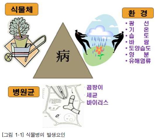 주인의 활동을 도와 발병을 촉진시켜주는 환경적 요인을 말하며, 발병환경에는 온도, 습도, 광, 비료 등이 해당된다.