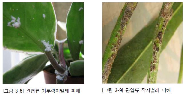 3. 깍지벌레에 감염된 식물체를 관찰할 수 있다.