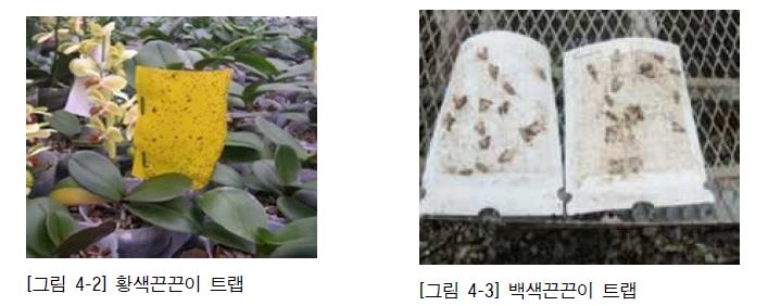 특정해충의 색상별 유인정도를 이용하여 해충을 사멸시키는 트랩으로서 화훼작물에서는 황색끈끈이트랩을 가장 많이 사용한다.