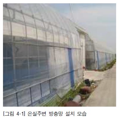외부에서 날아오는 해충을 차단하기 위해 온실주변에 방충망을 설치한다. 단 방충망의 구멍 크기(메쉬)가 클 경우 아주 작은 미소해충의 유입이 가능하다.