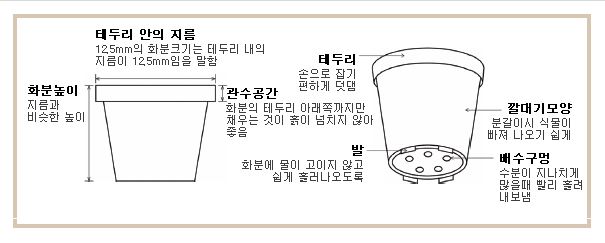 A) 화분의 종류는 크기와 형태, 재질에 따라 매우 다양한 종류가 있다. 용기의 종류별 특성을 살펴보면 다음과 같다.