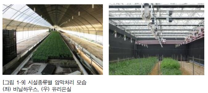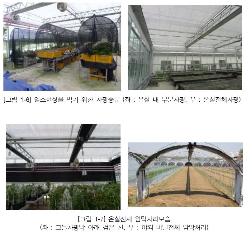 차광재배는 개화를 위한 암막처리용과 일소현상을 막는 그늘 차광재배가 있어 혼돈하지 말아야 함.