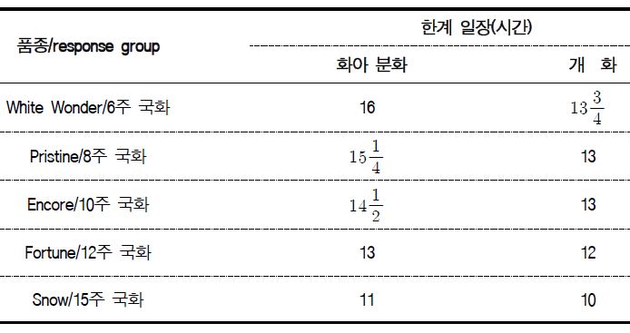 3. 국화 품종에 따른 한계일장을 설명한다.