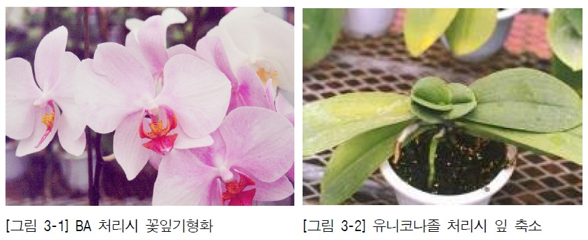 B-9, CCC(철쭉), GA(페튜니아), 에틸렌(아나나스), BA(숙근 안개초)