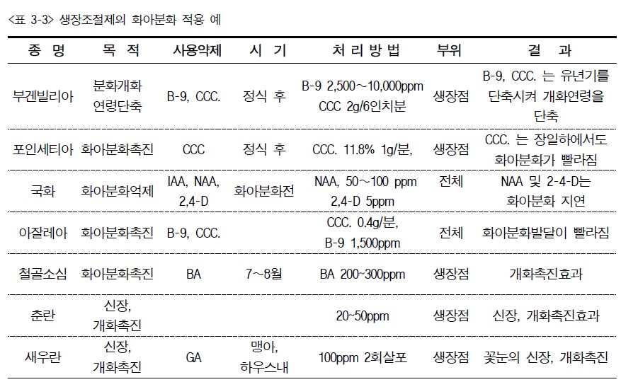 2. 생장억제제 종류별 처리방법 및 농도