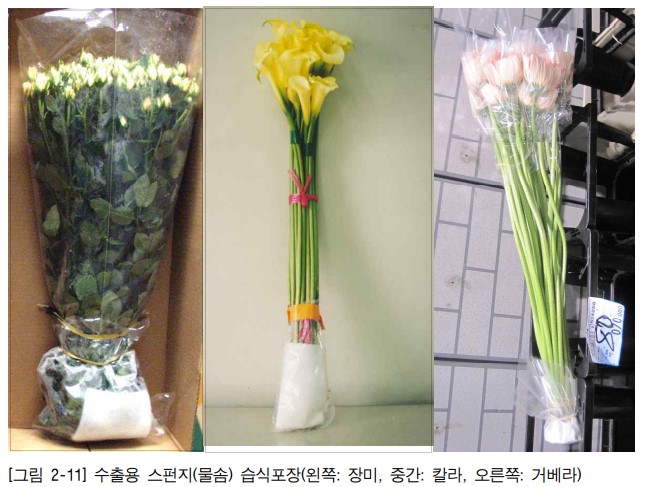 (그림 2-11). 또한 수입되는 열대산 절화의 경우, 한 송이 마다 물통을 꽂아 품질을 유지하고 있다(그림 2-12, 그림 2-13).