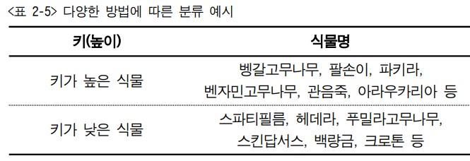 (5) 실내정원에 이용되는 식물들을 다양한 방법으로 분류할 수 있다.