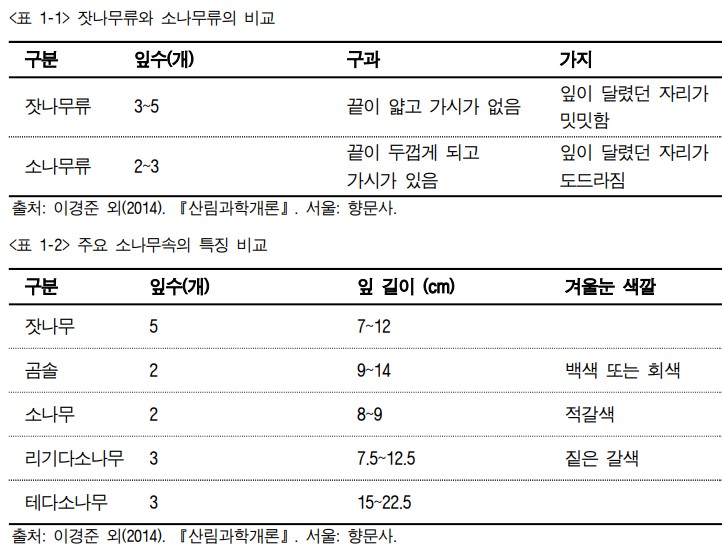 1. 소나무속(Genus Pinus)을 식별한다.