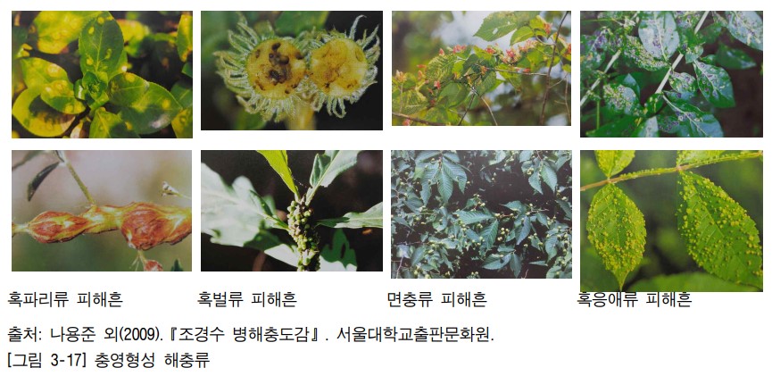 잎과 가지 및 새순을 가해한다([그림 3-17]).